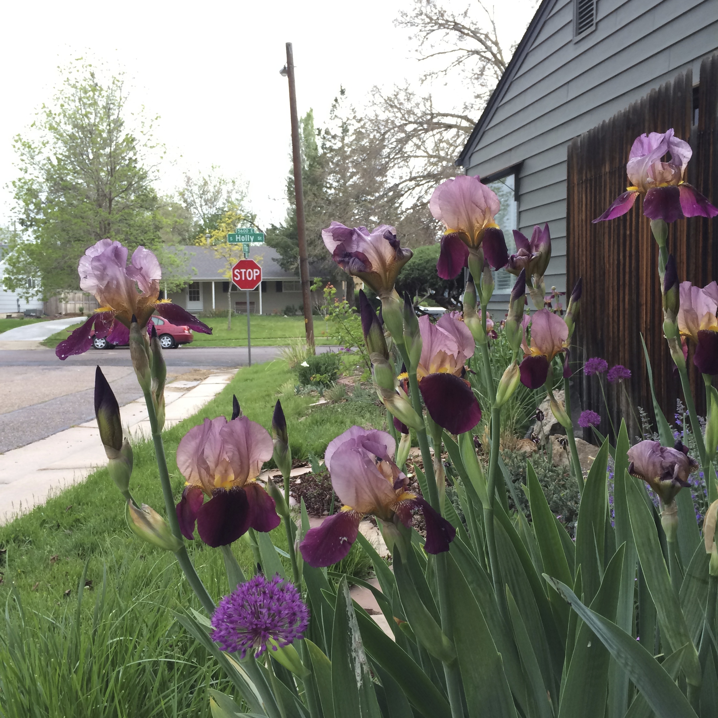 - Purple irises before the snowstorm.
