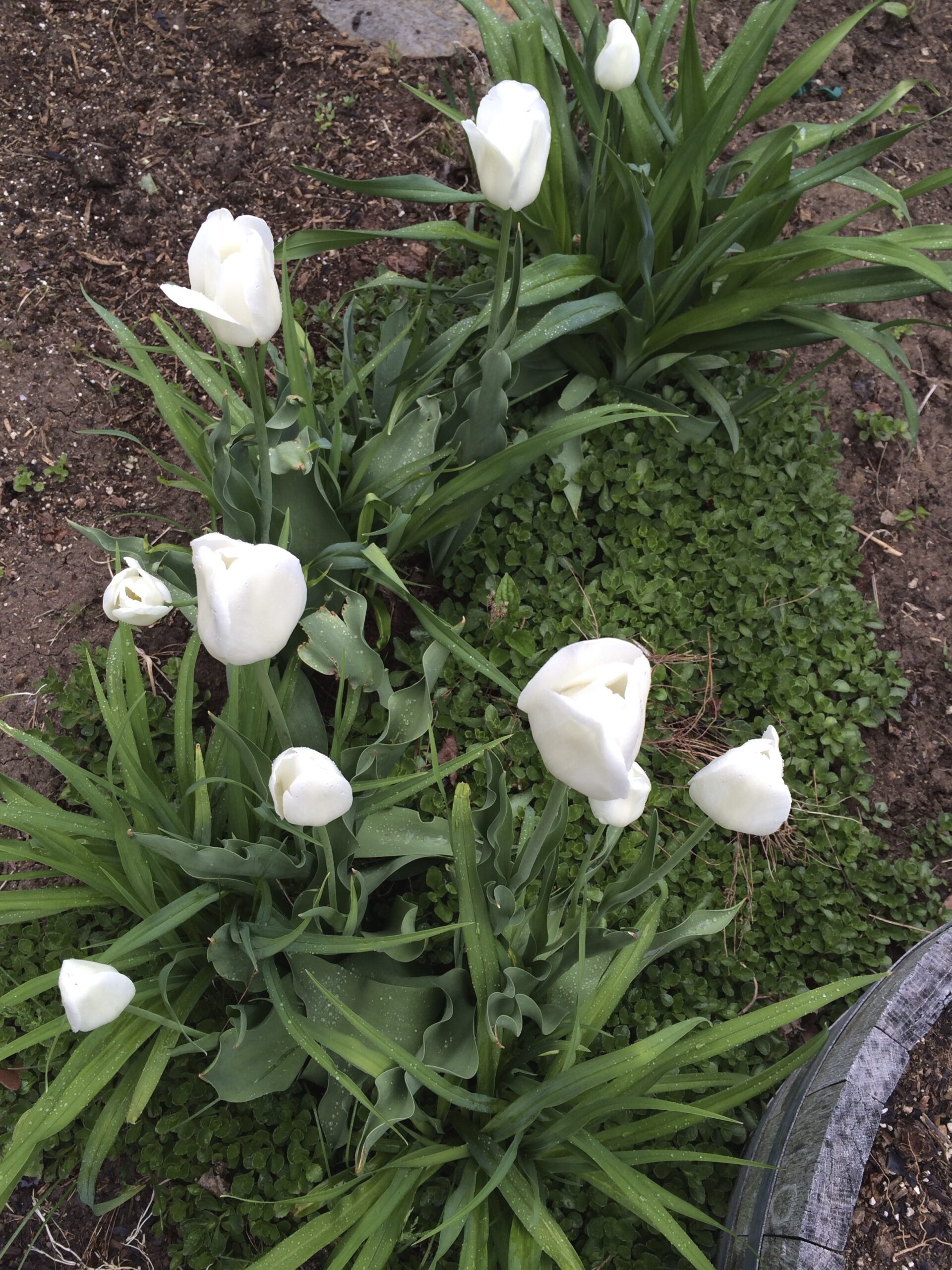 - White tulips in the center garden.