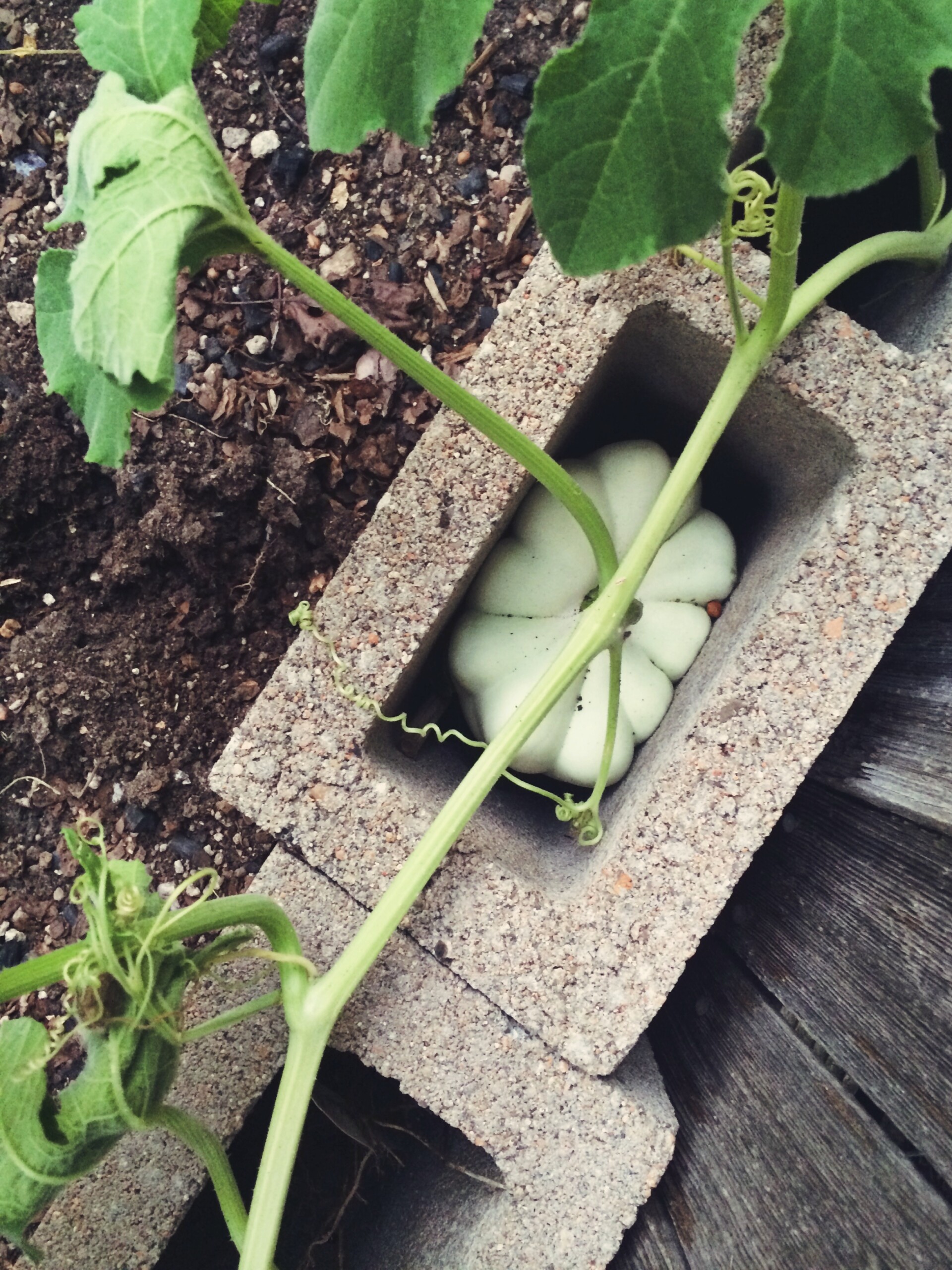 - The time we found a white acorn squash growing in a cinder block! We had to take a hammer to the block and bust it up, in order to harvest that squash.