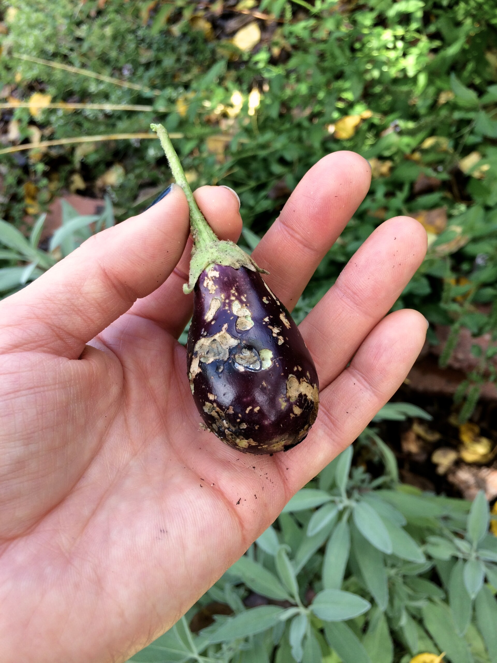 - The only eggplant we grew this summer. And a squirrel decimated it. #littlebastard