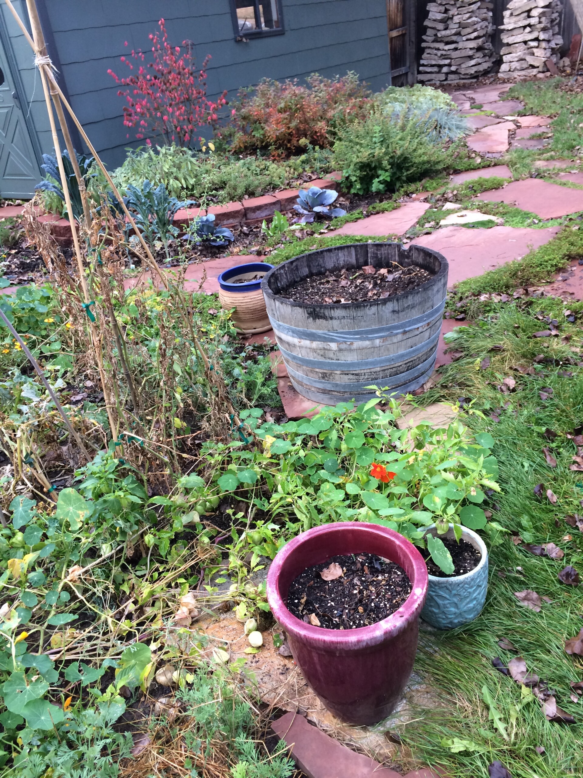 - This late fall photo of the garden was taken just before an early snowstorm hit. Everything is basically brown and dead. What couldn’t be harvested is now decomposing in the bin. #vegetablereincarnation