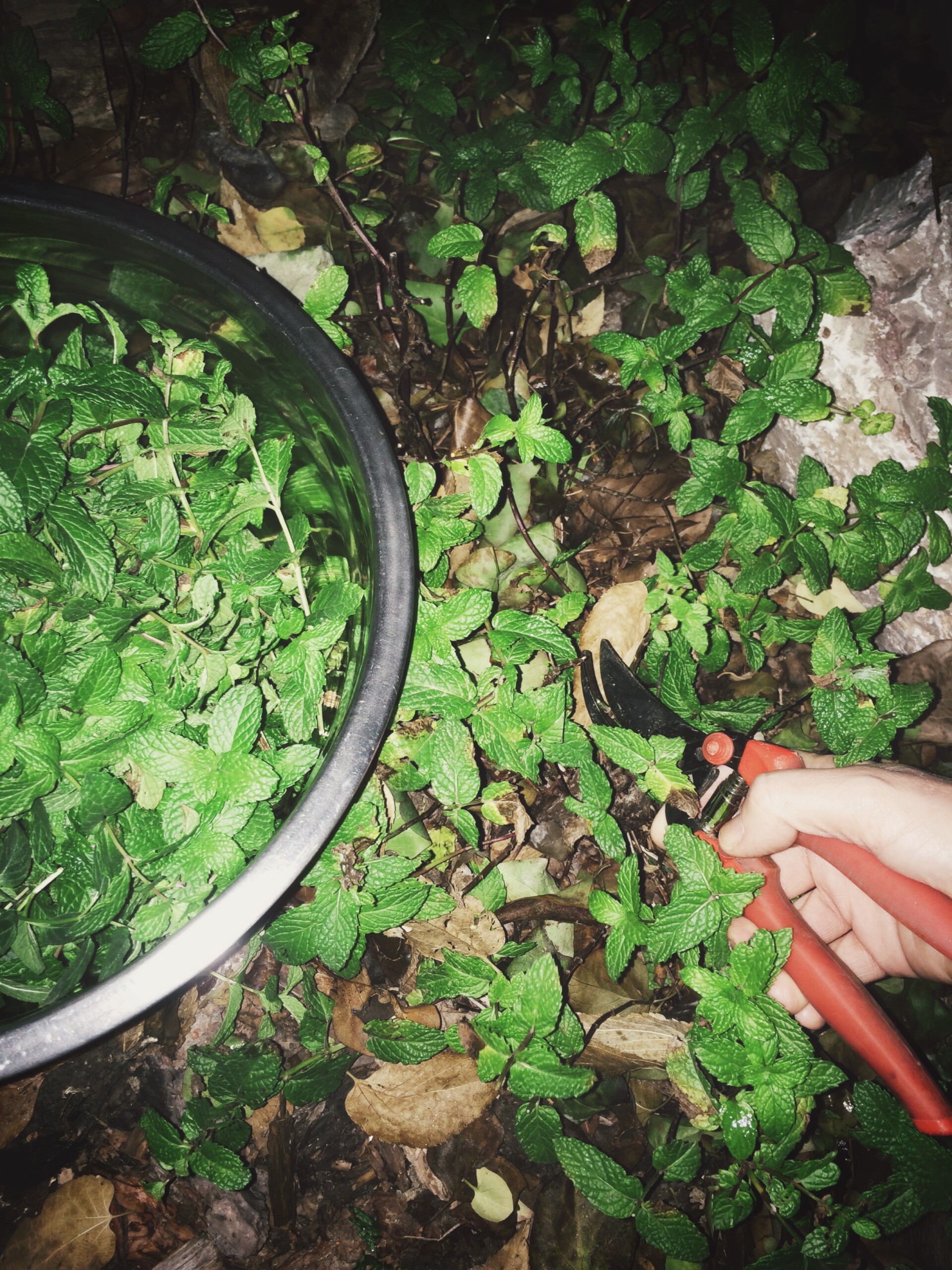 - Just before a recent freeze, I harvested the mint by flashlight and dried the leaves for mint tea.