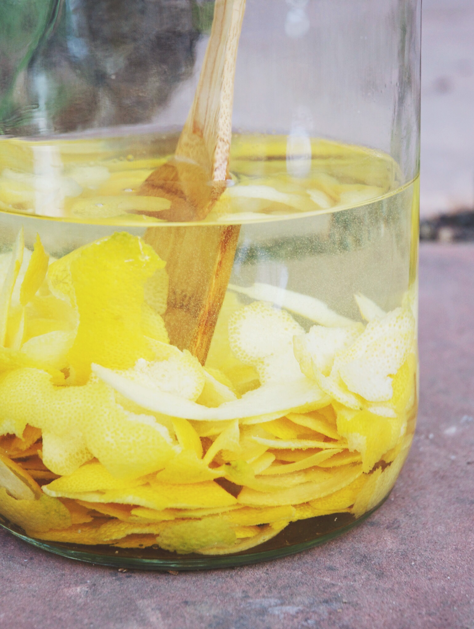 - 3.11.15 I combined the lemon peels with 750 mL of vodka and 750 mL of grain alcohol (Everclear) and stored it down in the basement. Over the course of 11 weeks, I’d go downstairs and shake the jar every Tuesday and Saturday. Slowly, the color and flavor was being extracted by the alcohol.
