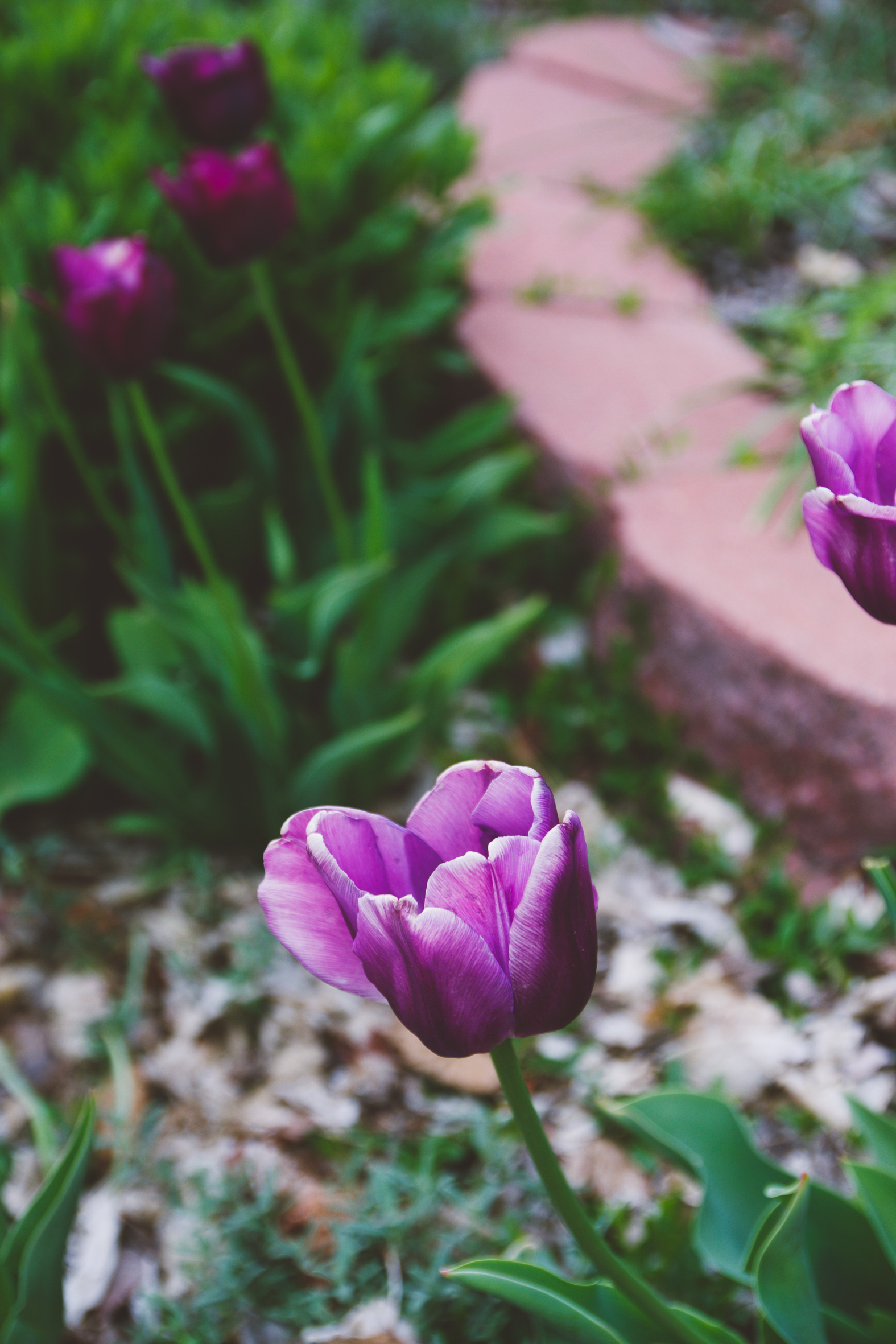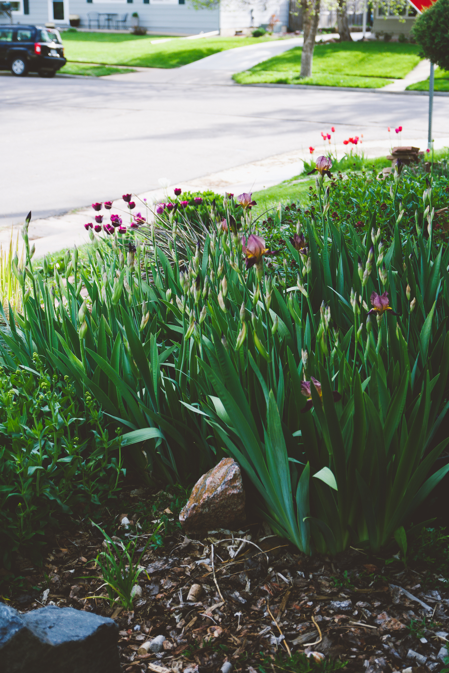 Closing, again, with some snippets from the garden this afternoon: late-spring tulips, proliferating mint, sprawling sedum, fragrant lilac, untamed borders, new fences, and freshly picked herbs.