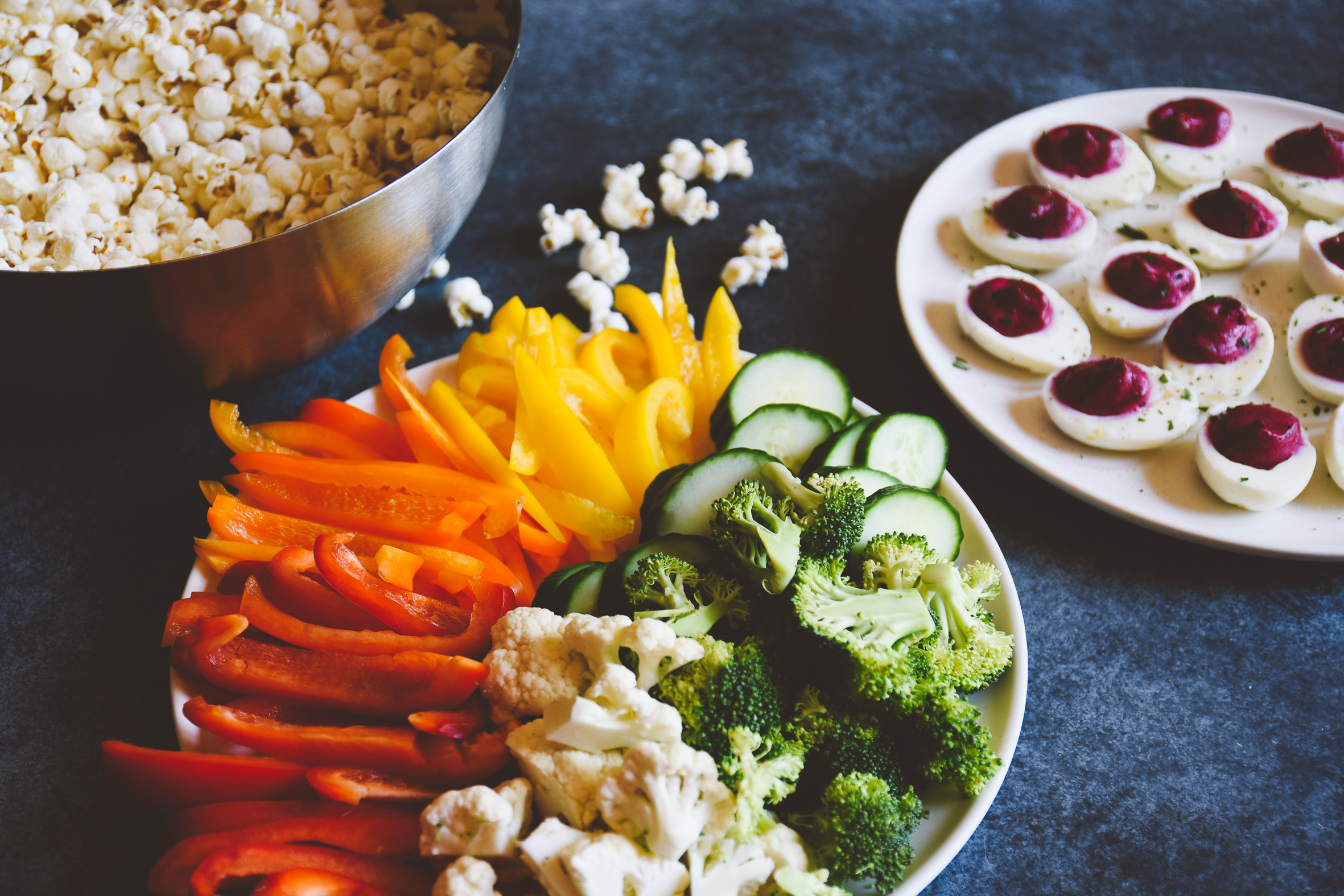- Sherrie and Amanda greeted us with chopped veggies, beet deviled eggs, collagen-boosted hummus, and popcorn I simply couldn’t stop eating.