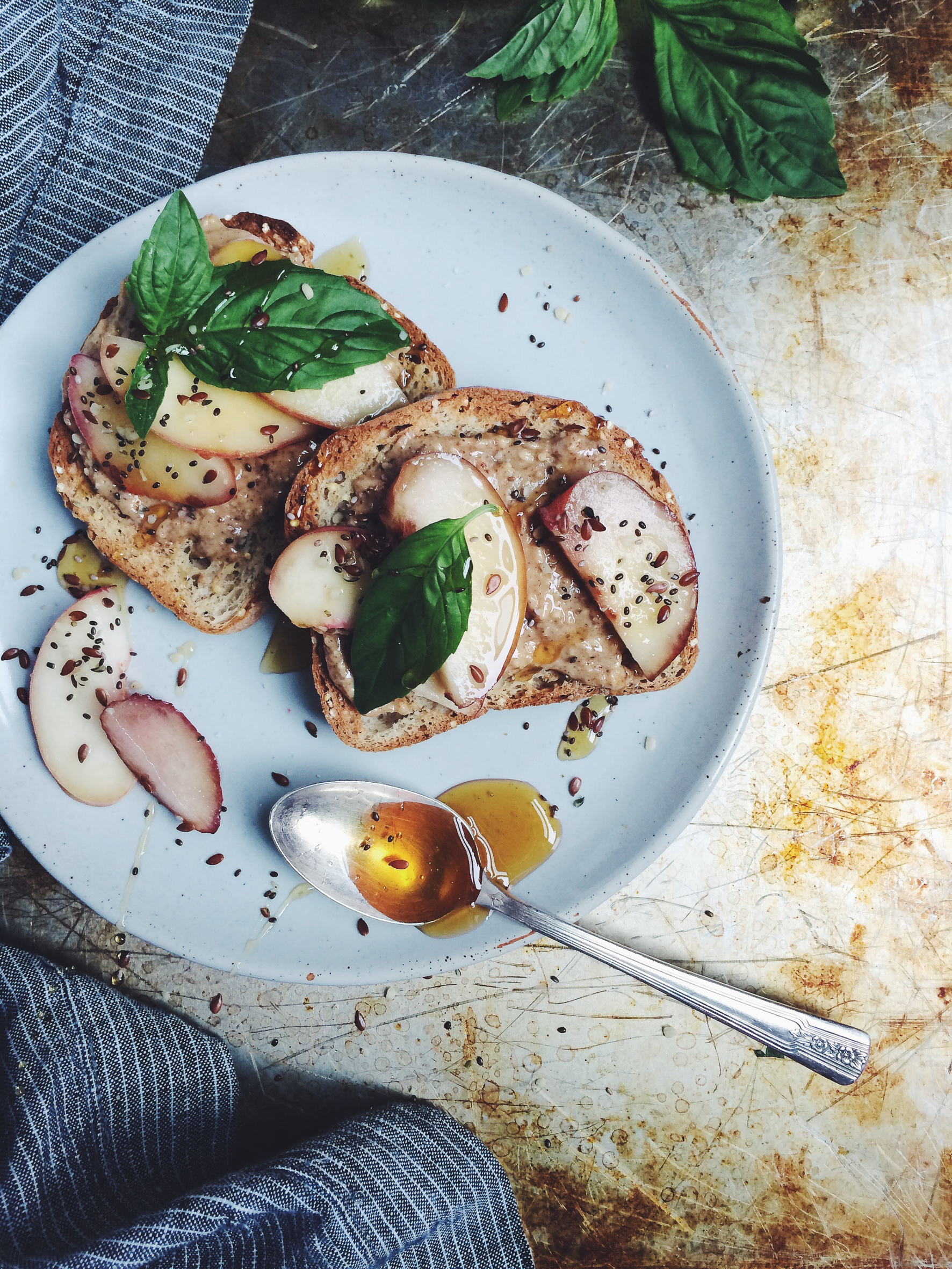 - This was my favorite breakfast I made, while I was in MN: Udi’s Millet-Chia toast with Big Spoon Roasters’ almond-ginger butter, fresh peaches, basil, honey, and NOW Foods’ Triple Omega Seed Mix.