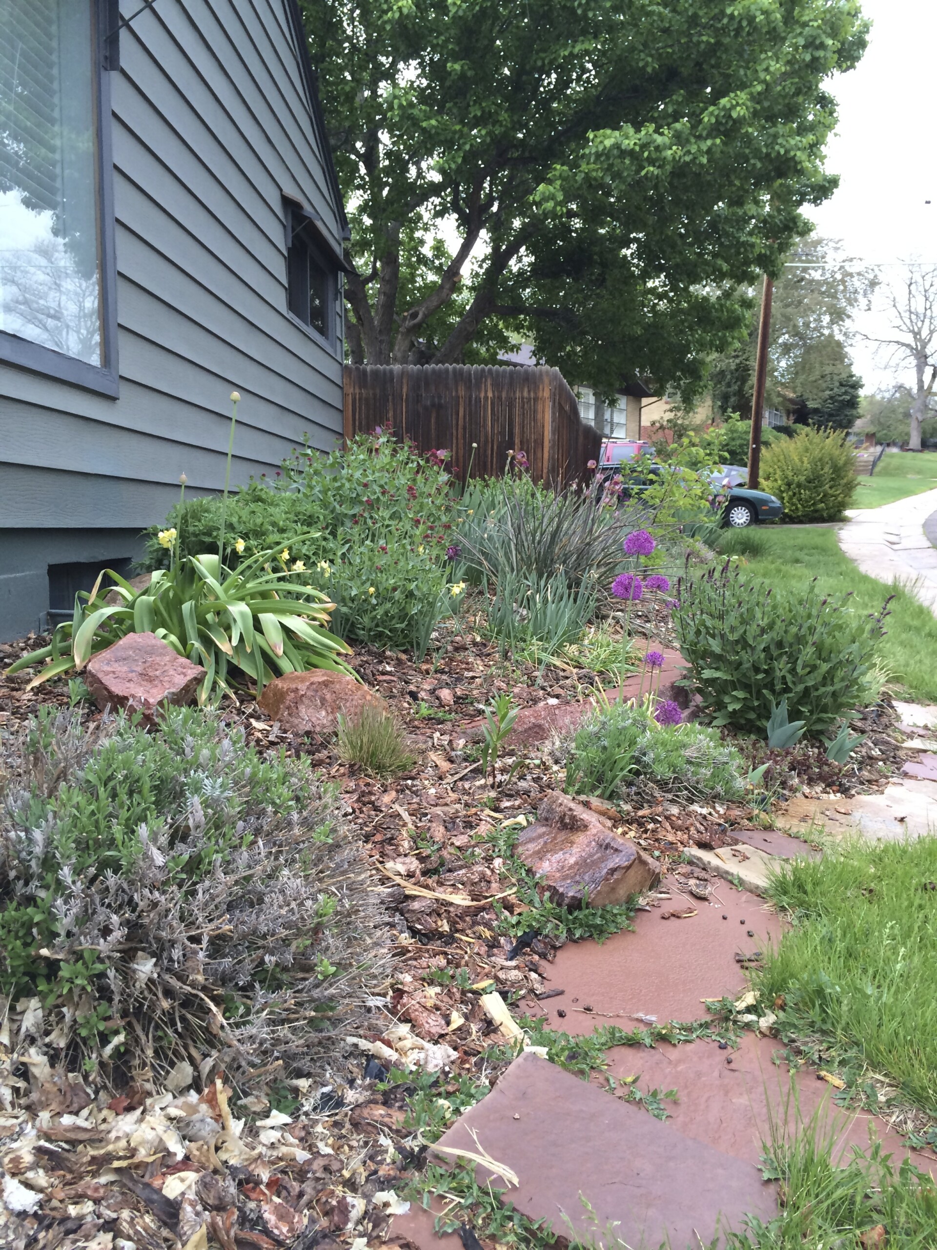 - My project is complete! Weeding the rocks along the front walk is a yearly task. It takes about two and a half hours, but the results are well worth the work!