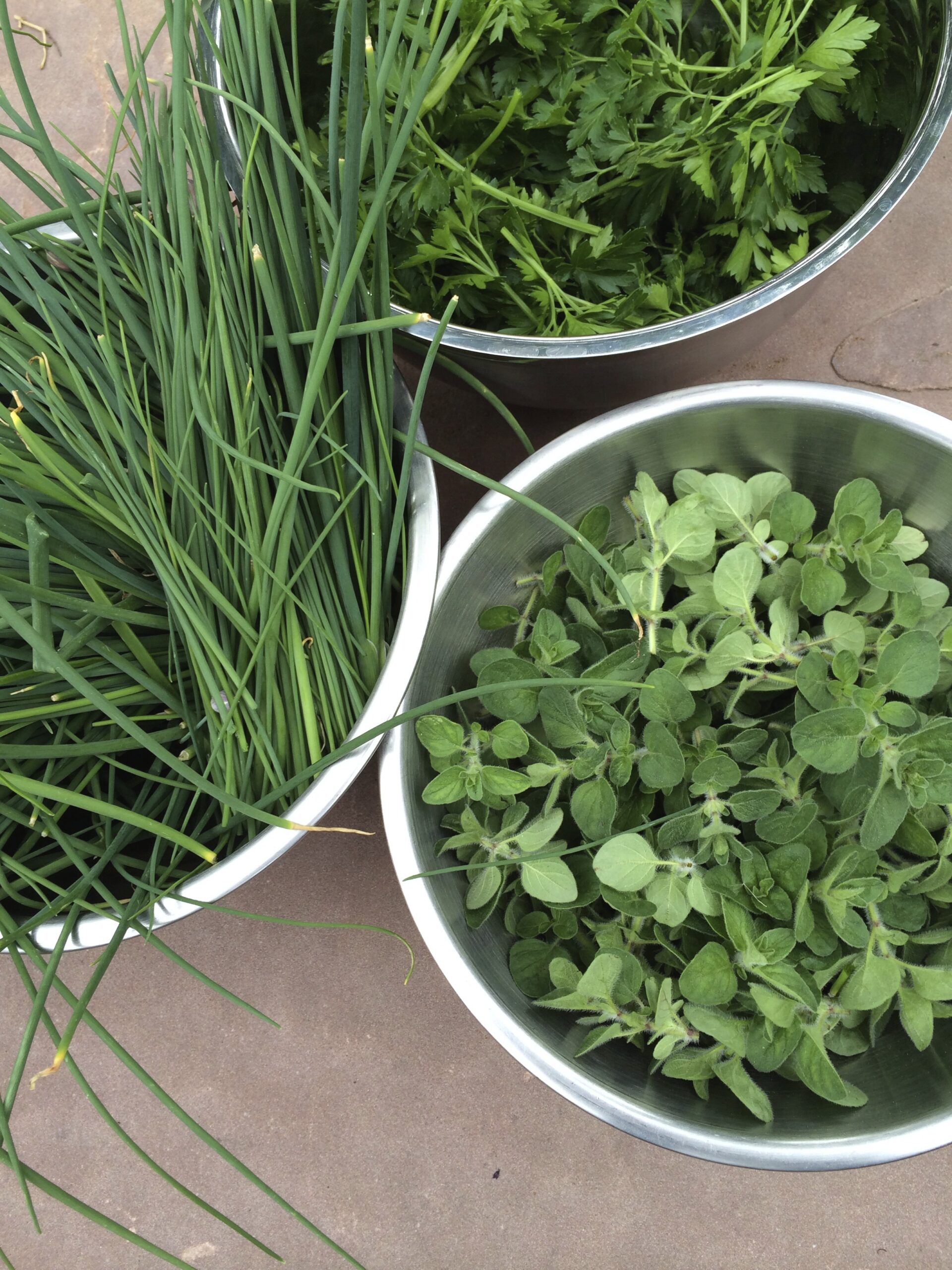 - Freshly clipped herbs: parsley, chives, oregano.