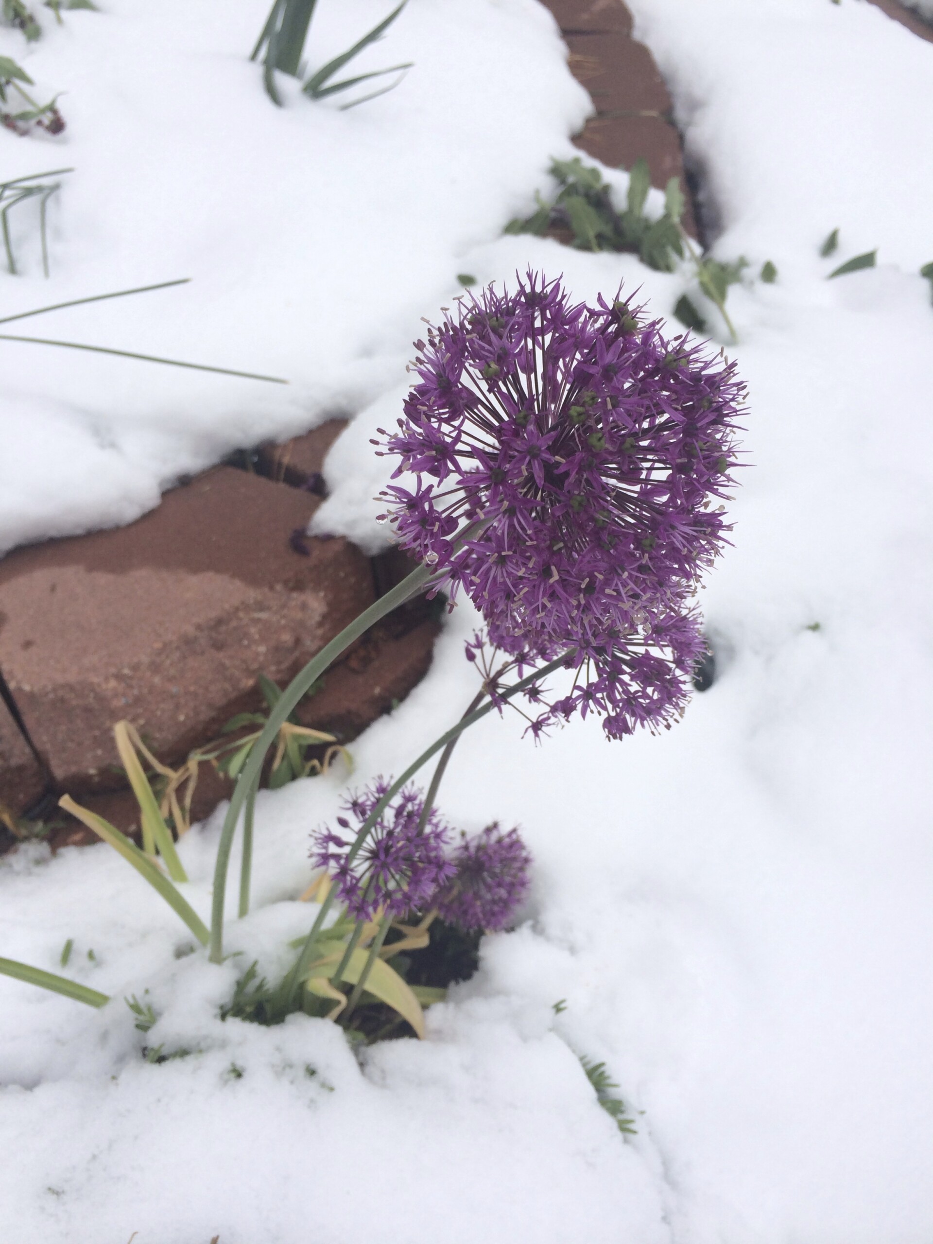 - Aliums and snow.