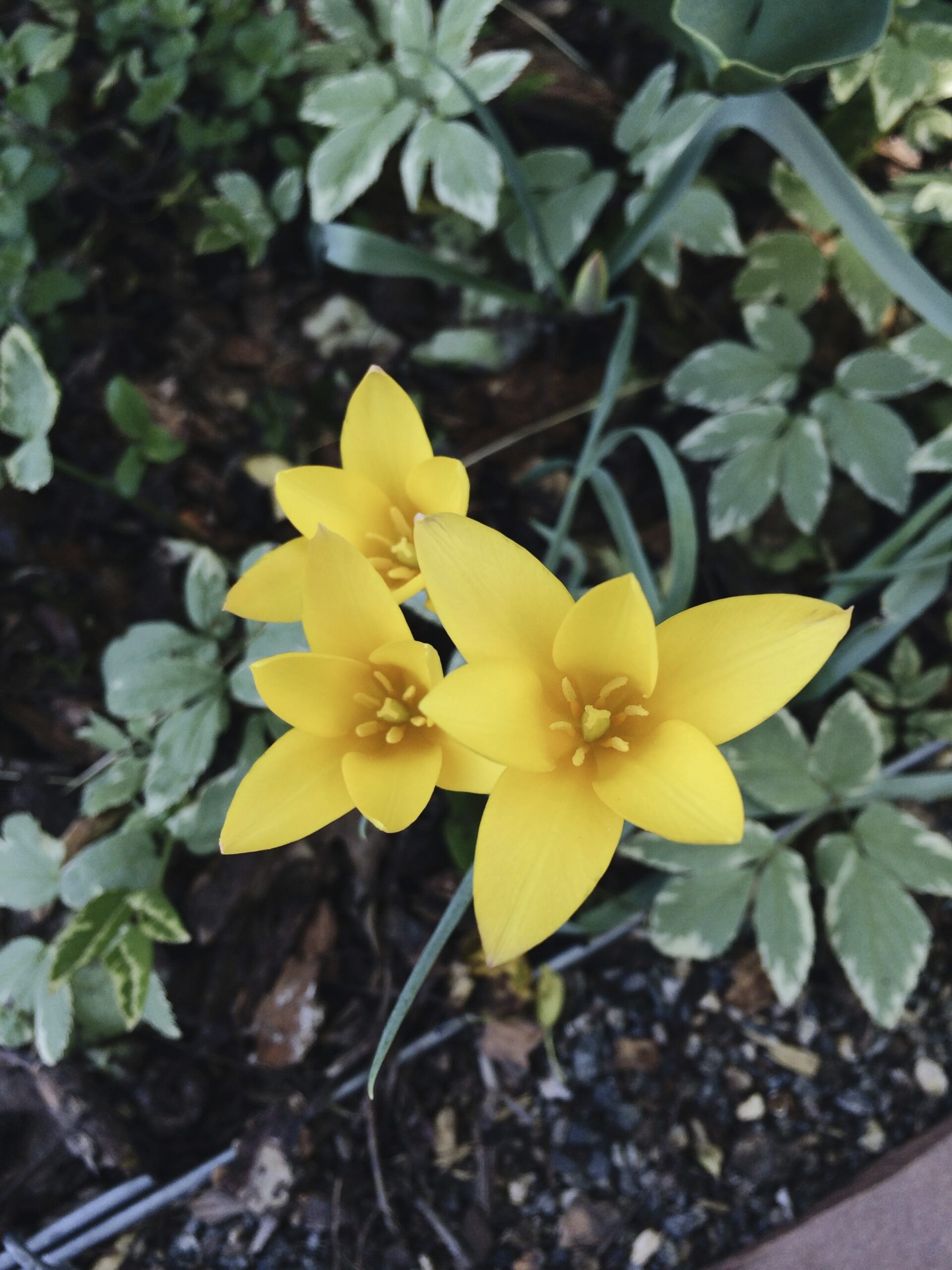 - Yellow spring tulips – about an inch in diameter!